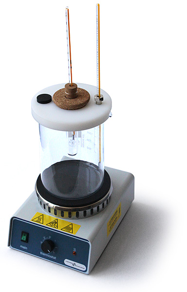 - Test tube with 25 mm outside diameter and 150 mm long with cork stopper with hole for thermometer